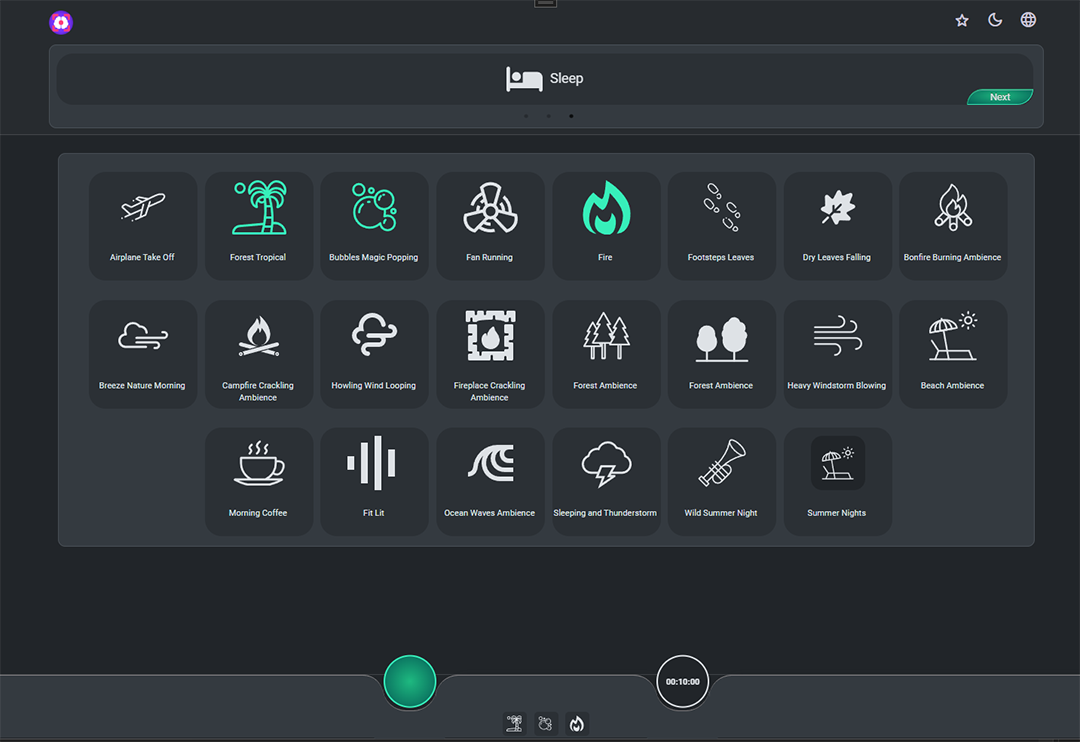 - Set a sleep timer to gradually fade out the sounds as you drift off.